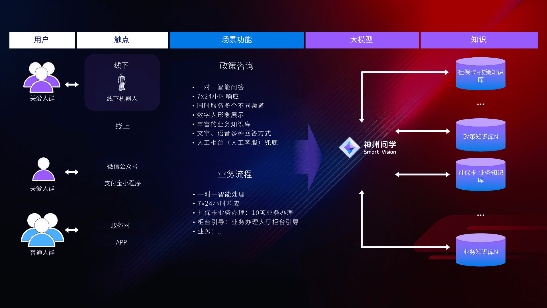 • 线上线下全覆盖:线上提供微信公众号、、、支付宝小程序、、、政务网、、、、app多种渠道,,,,与线下机器人形成完整服务体系。。